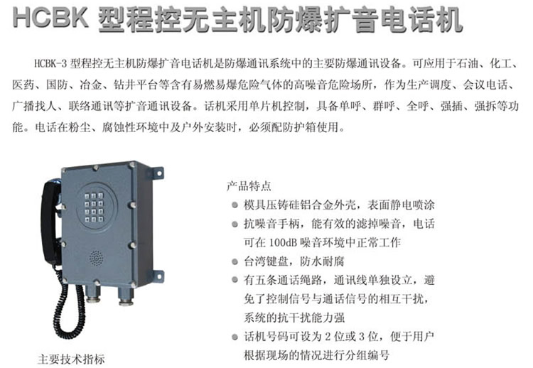 HCBK程控?zé)o主機防爆擴音電話